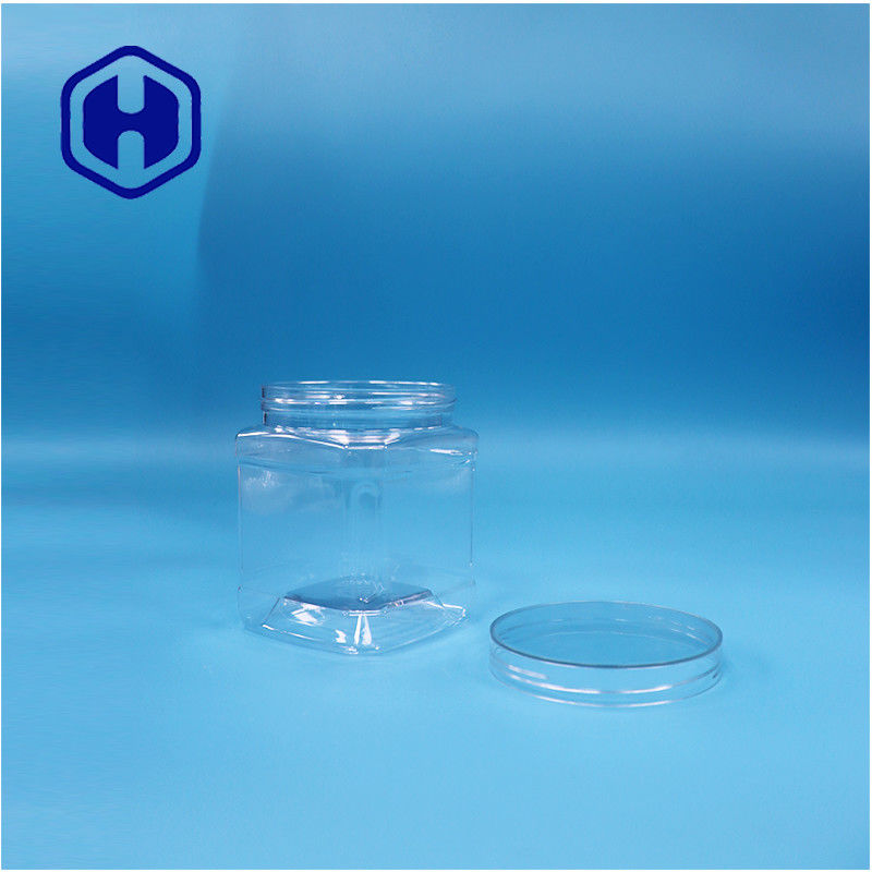 Clear Square PET Plastic Food Grade Sugar Candy Cookies Jar Dengan Tutup Sekrup