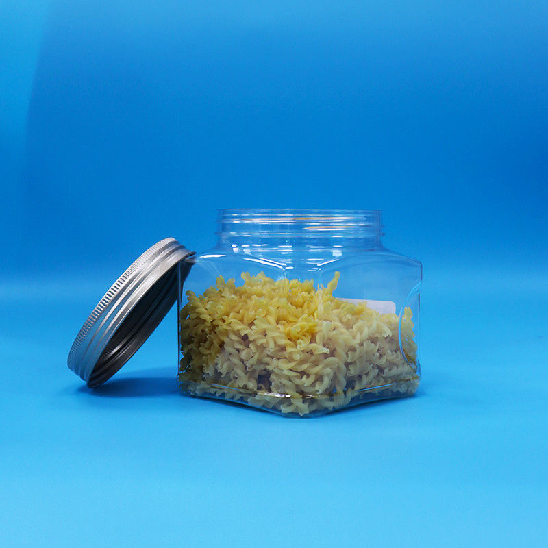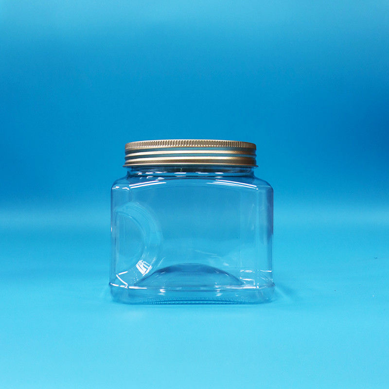 Food Grade Candy Food Snack PET Transparan Square Plastik Grip Jar Tutup Aluminium