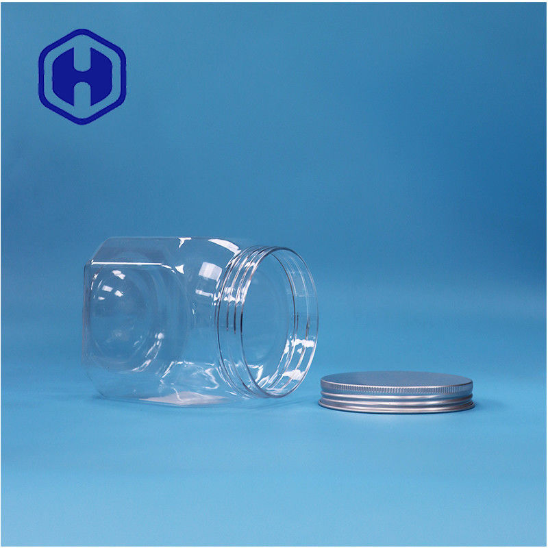 Bentuk Poligonal PET Plastik Kue Rock Candy Kacang Kertas Jar Aluminium Tutup
