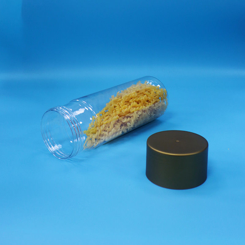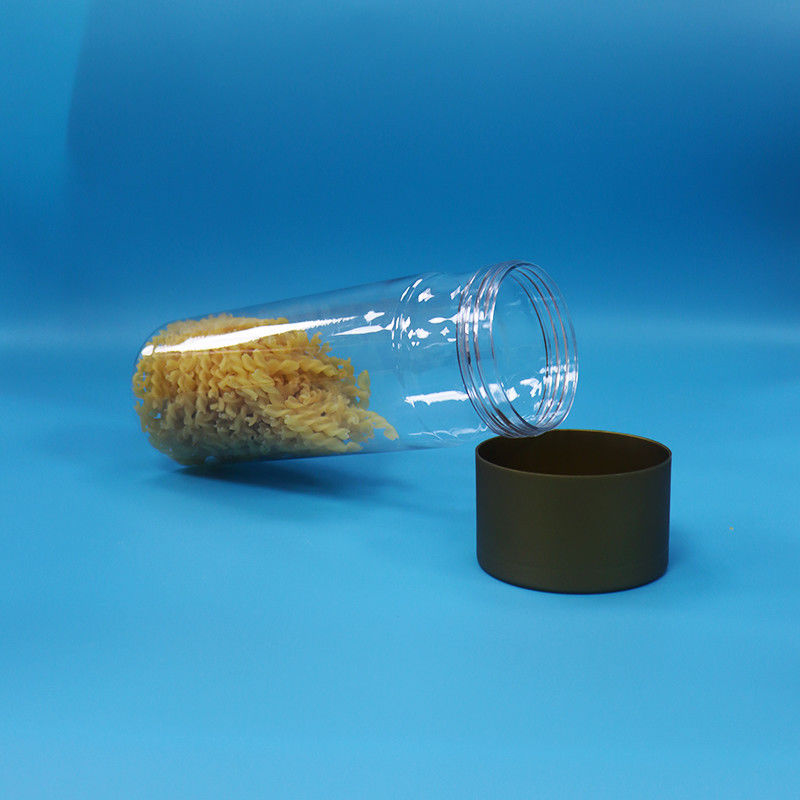 Kue plastik PET transparan Kacang-kacangan Permen Silinder Tinggi Botol Bulat Tutup Sekrup