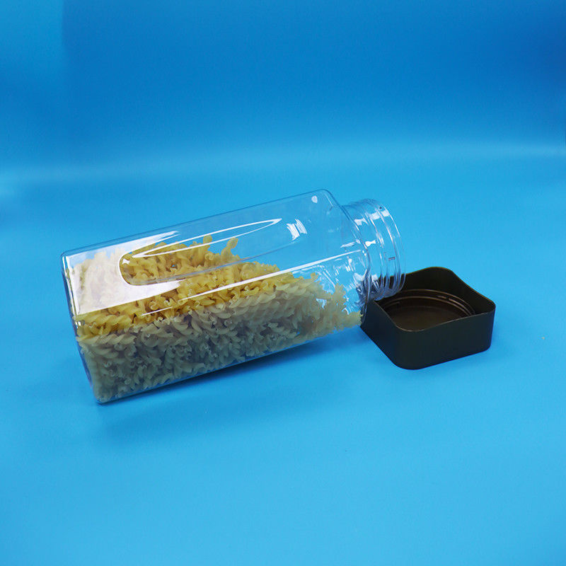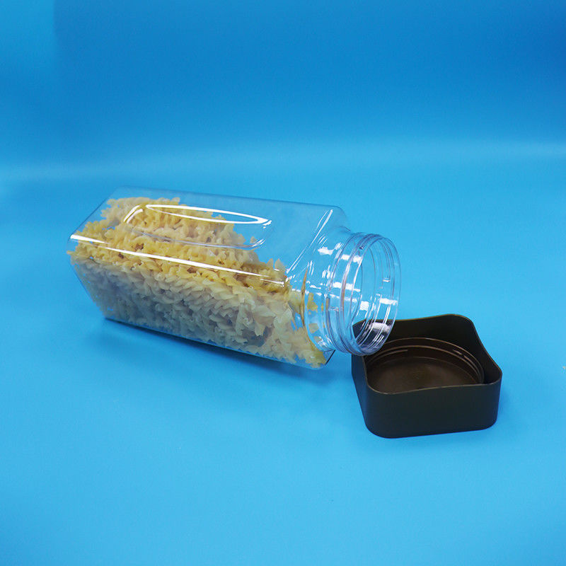 (3) PET bening mulut lebar persegi panjang botol plastik permen dengan tutup logam adalah 100% anti bocor dan kedap udara