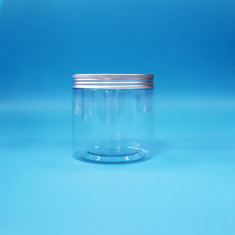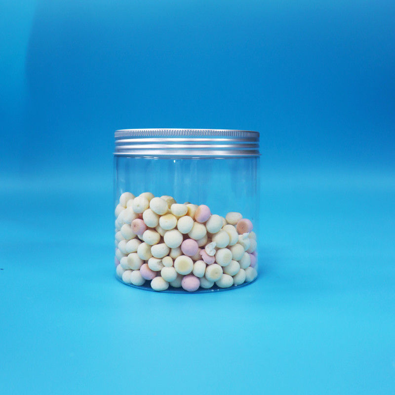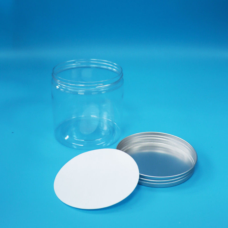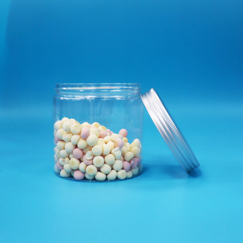Bentuk silinder bulat mulut lebar PET bening plastik biskuit Jar Aluminium sekrup Cap