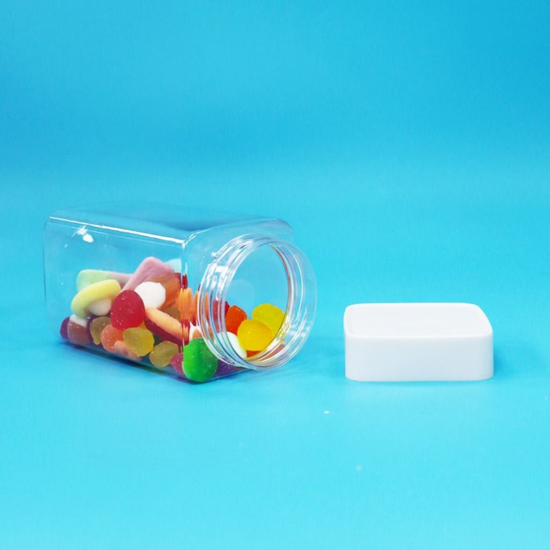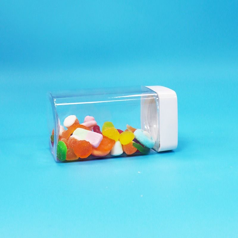 Wadah Makanan Plastik PET Kosong Transparan dengan Tutup Putih Persegi untuk Makanan Permen Kue, Food Grade