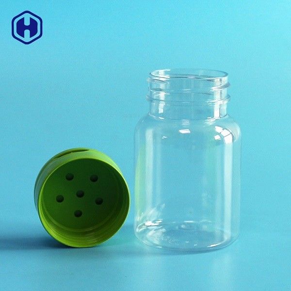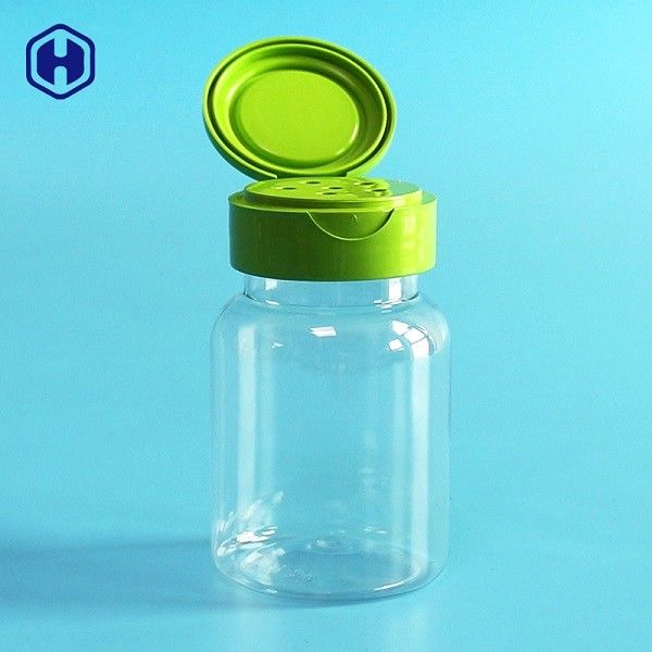 Ini adalah botol rempah-rempah plastik bening yang membutuhkan aluminium foil shim untuk disegel dengan mesin penyegel atau menggunakan tekanan sensitif shim dan kemudian tidak perlu mesin, cukup letakkan di atas dan tutup tutup sekrup.
