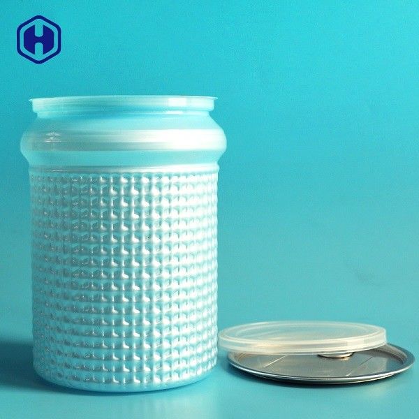 Ini adalah kaleng plastik berbentuk timbul yang setelah Anda mengisi produk makanan dalam kaleng, tutup aluminium EOE (Easy Open Ends) / POE (Peel Off Ends) atau tutup pelat timah memerlukan mesin penyegel untuk menutup tutupnya, kami menyediakan cocokkan mesin penyegel untuk klien juga jika perlu. Kami menawarkan kaleng terbuka yang mudah yang dapat menyimpan sekitar 1150 ml produk berkapasitas air dalam kaleng, dan kaleng plastik ini anti bocor dan kedap udara 100%.
