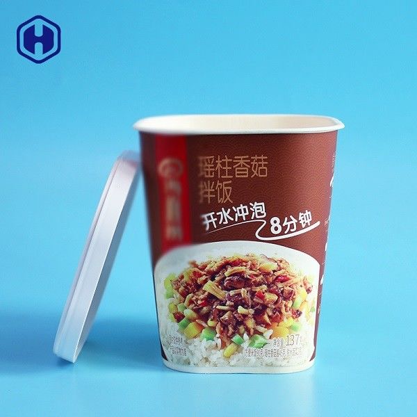Piala Mie Persegi Dengan Label Pencetakan Mangkuk Tutup IML Wadah Makanan Kosong Plastik PP