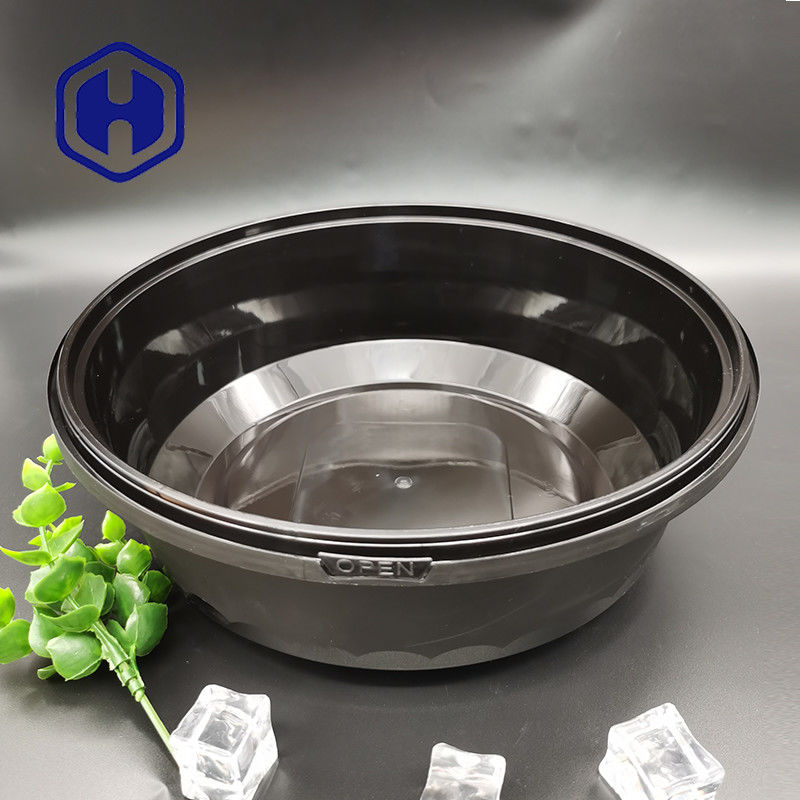 Cetak Kustom 1100ml Sekali Pakai Salad Buah Food Grade Makan Siang Ayam Goreng Bulat Mengambil Mangkuk Plastik Dengan Tutup