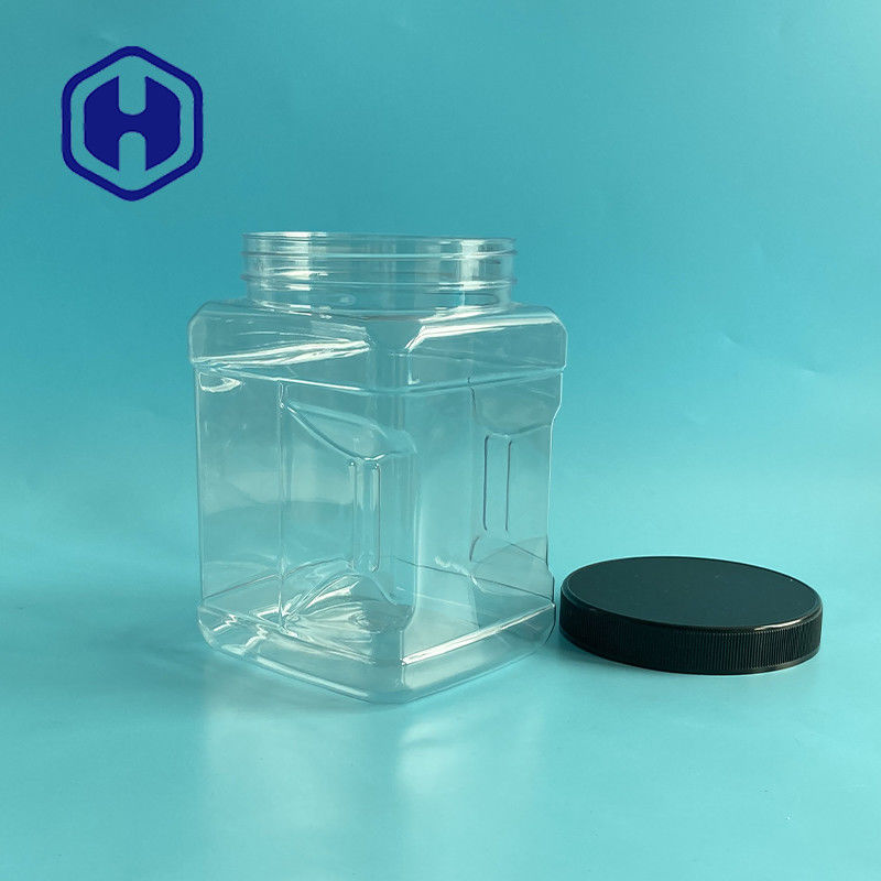 Food Grade Ukuran Besar Persegi 110mm Plastik 1805ml 61oz Gripped Wide Mouth Jar Untuk Penyimpanan Rumah Tangga