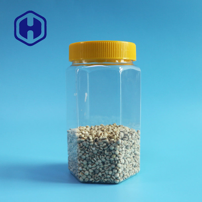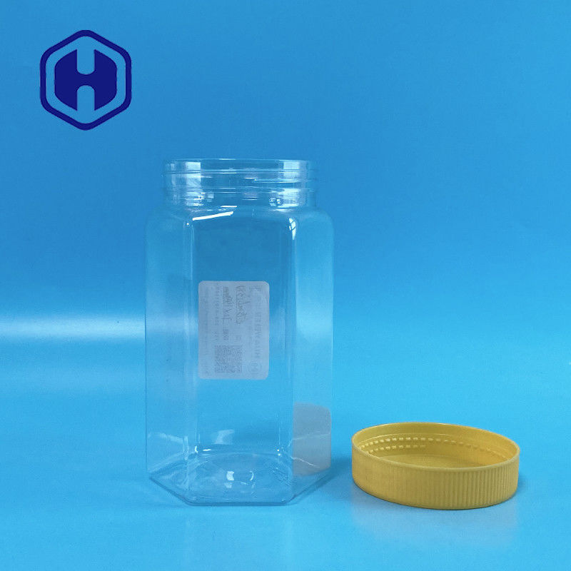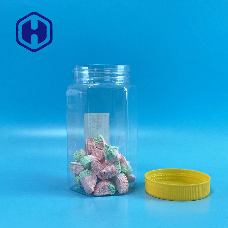 Toples makanan PET dengan penutup, toples plastik kemasan makanan, toples plastik makanan lebar, toples kemasan makanan plastik PET dengan penutup, toples plastik PET mulut lebar segi enam, toples kemasan makanan transparan massal 670ml |