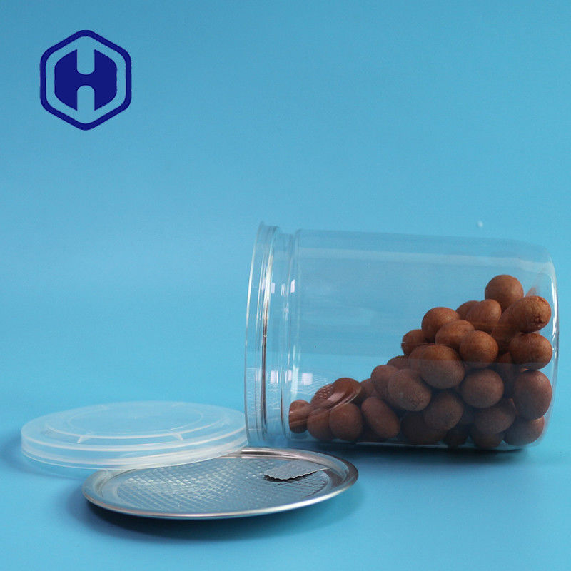 Sablon Logo Transparan 490ml 307# Biskuit Kacang Mete Mudah Buka Kaleng Plastik PET