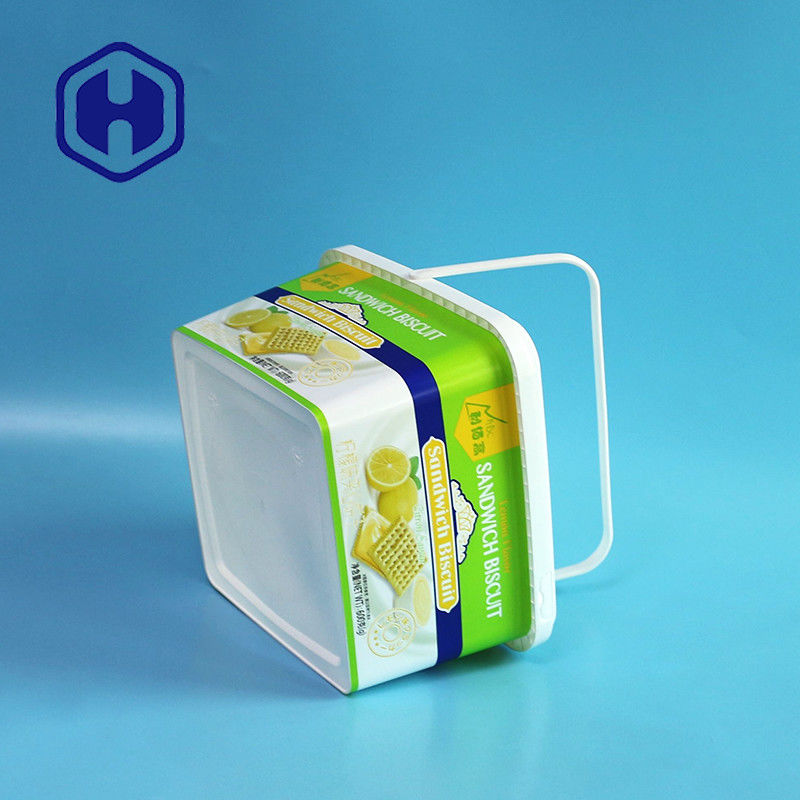 Eco Friendly Disposable Custom Durable Square 2L Plastic Cracker Biscuit IML Container Packaging Box