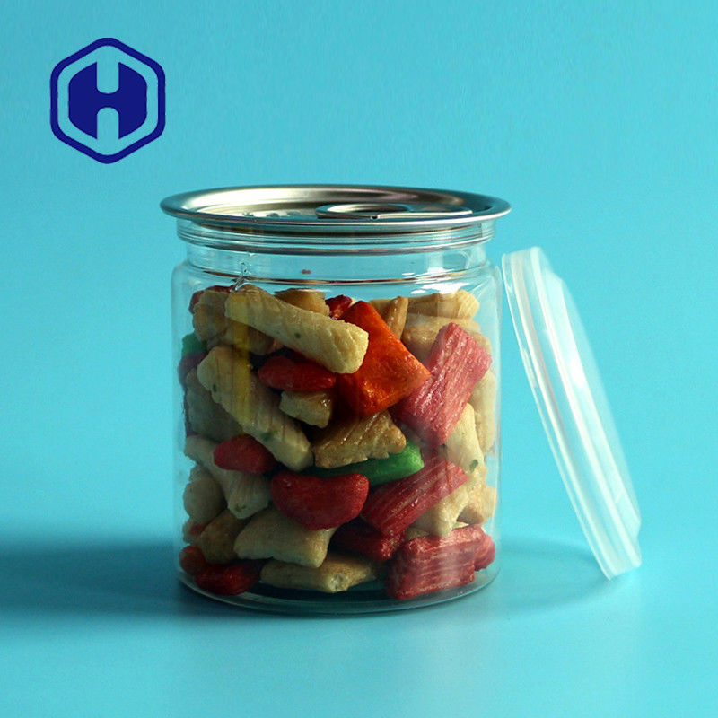 Kaleng plastik bening ini adalah kaleng PET kosong untuk makanan yang cocok untuk menyimpan makanan kering kaleng, saus, rempah-rempah dan sebagainya.Ini memiliki ujung terbuka mudah dan datang dalam bentuk silinder atau dapat disesuaikan.