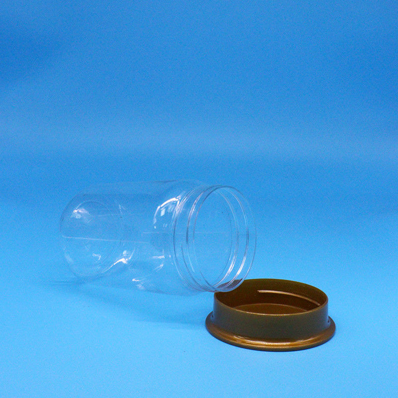 Transparan Segel Permen Biskuit PET Plastik Kacang Makanan Tinggi Botol Bulat Screw Caps
