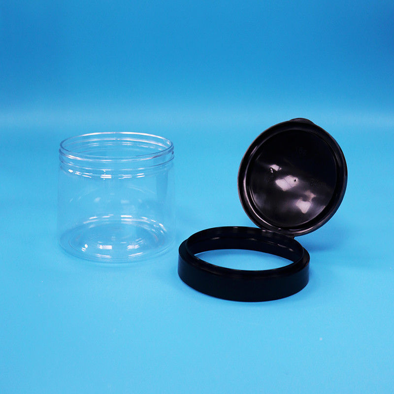Makanan Berkualitas Plastik Bulat Kecil Penyimpanan Botol Transparan Plastik Tutup Sekrup Hitam