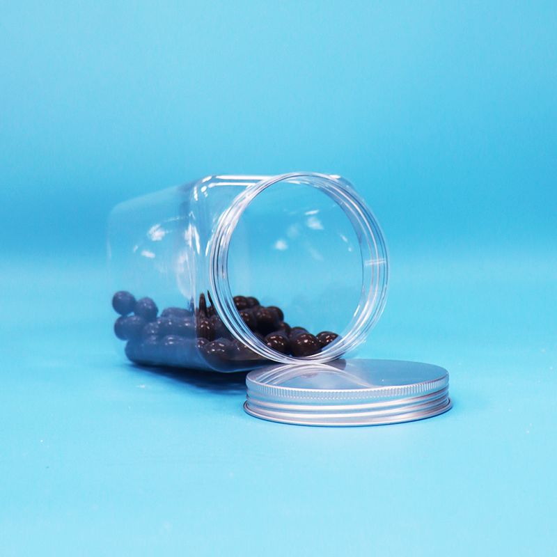 Toples Aluminium Sekrup Bentuk Persegi Plastik PET Transparan untuk Permen Mie Bebas BPA