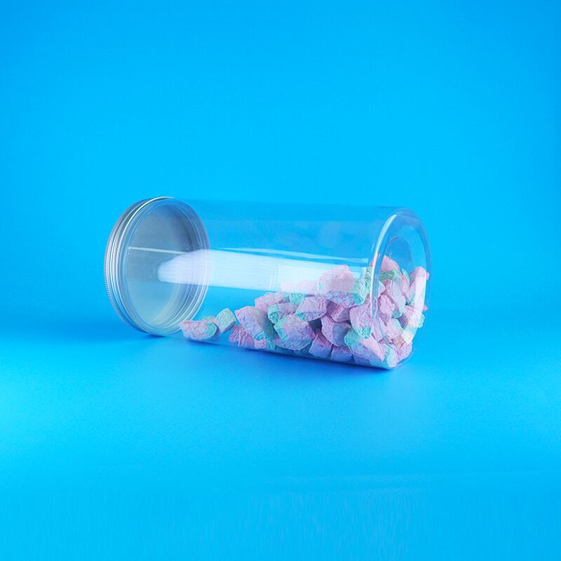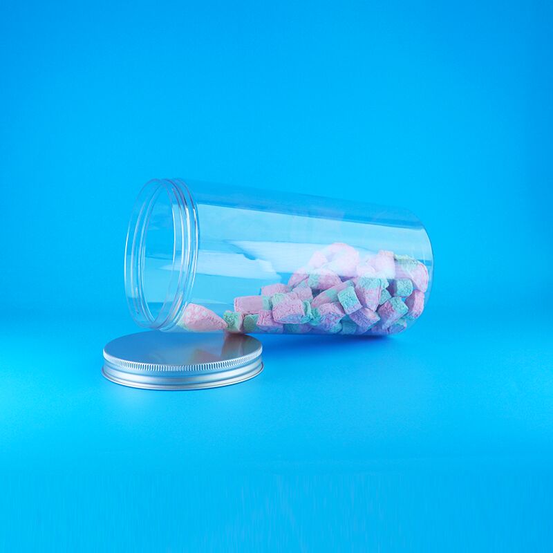 Mulut lebar Tutup Aluminium Jelas Tinggi Bulat Plastik Makanan Kering Keks Botol Permen